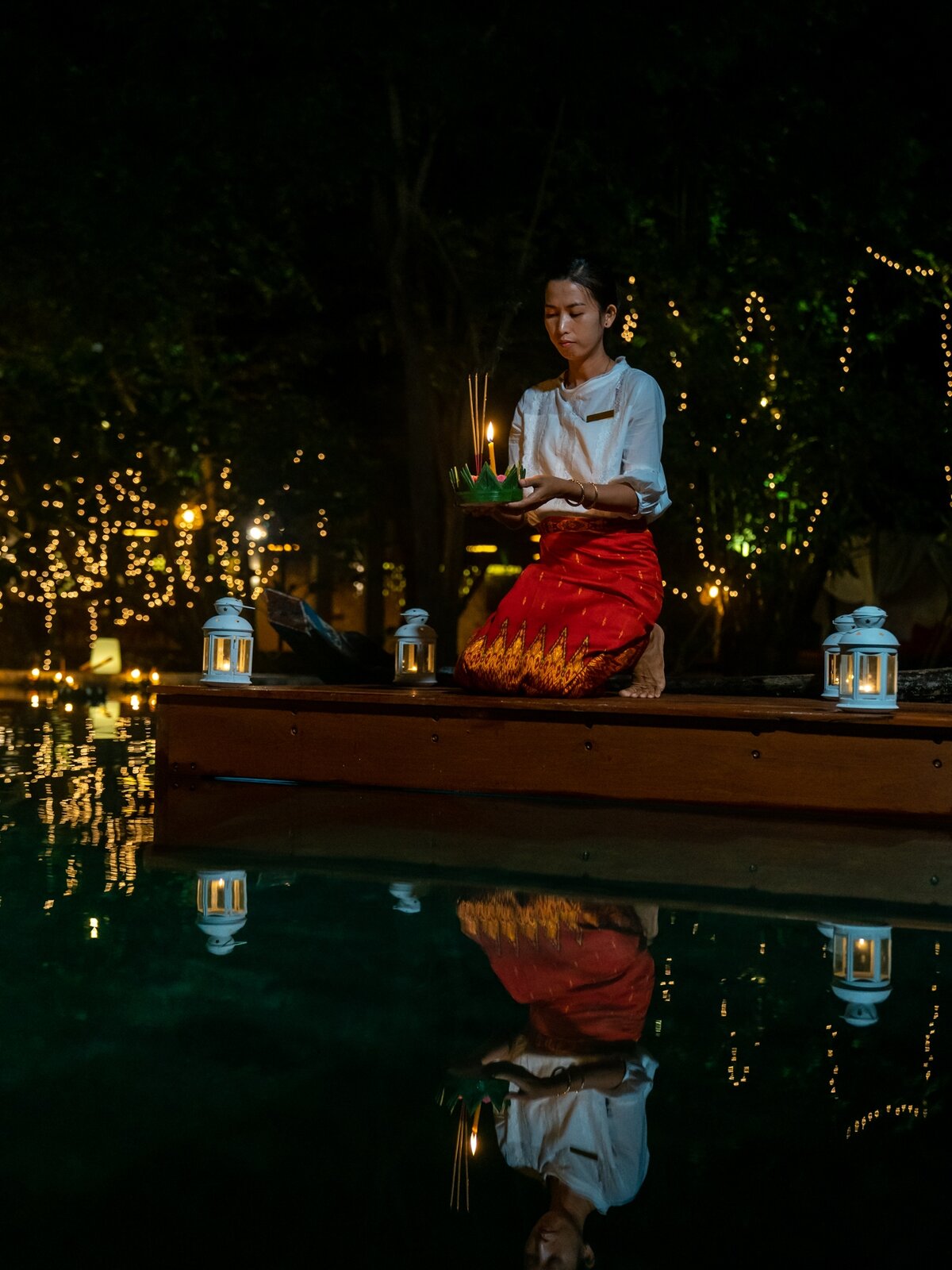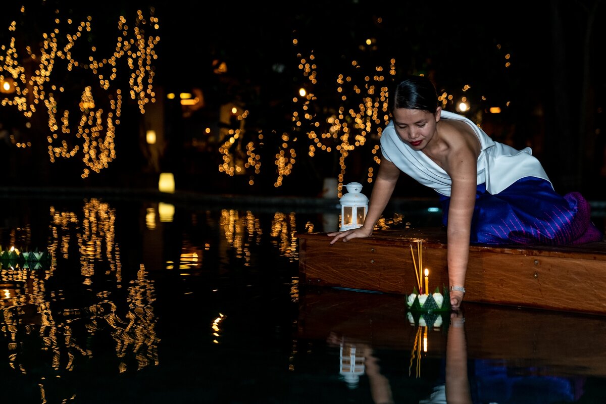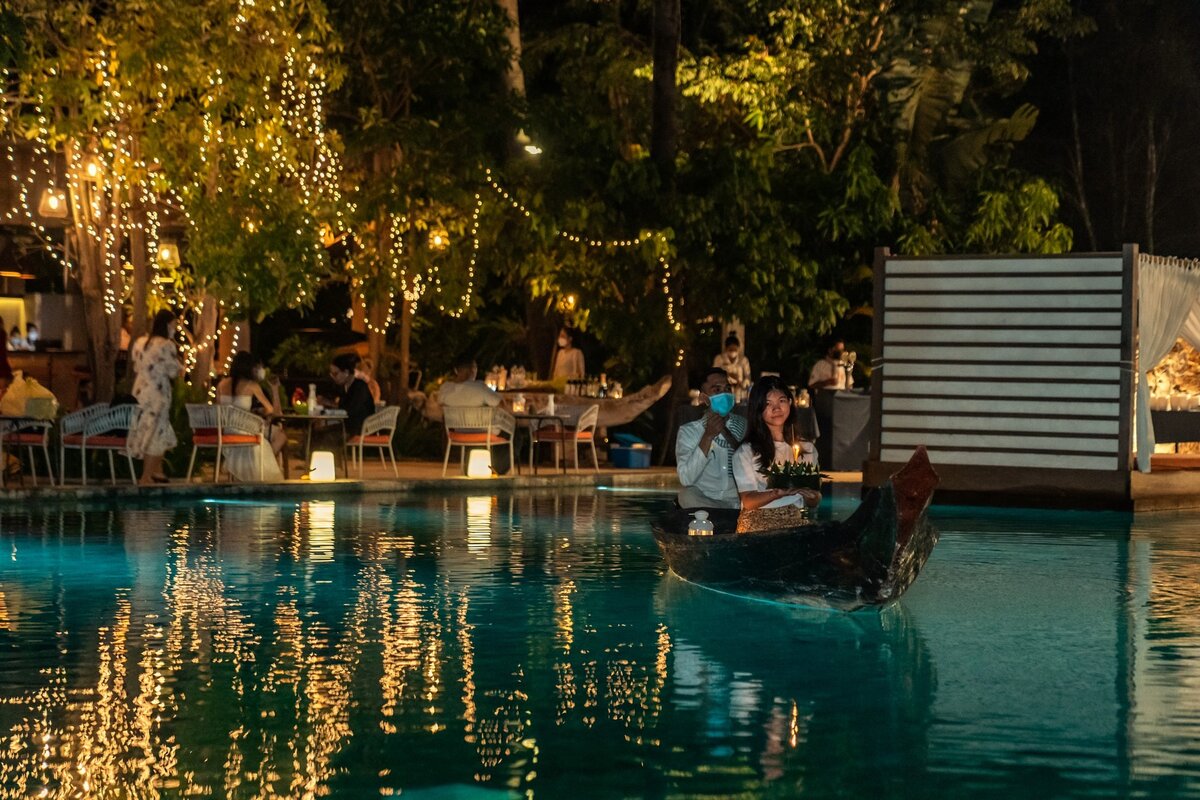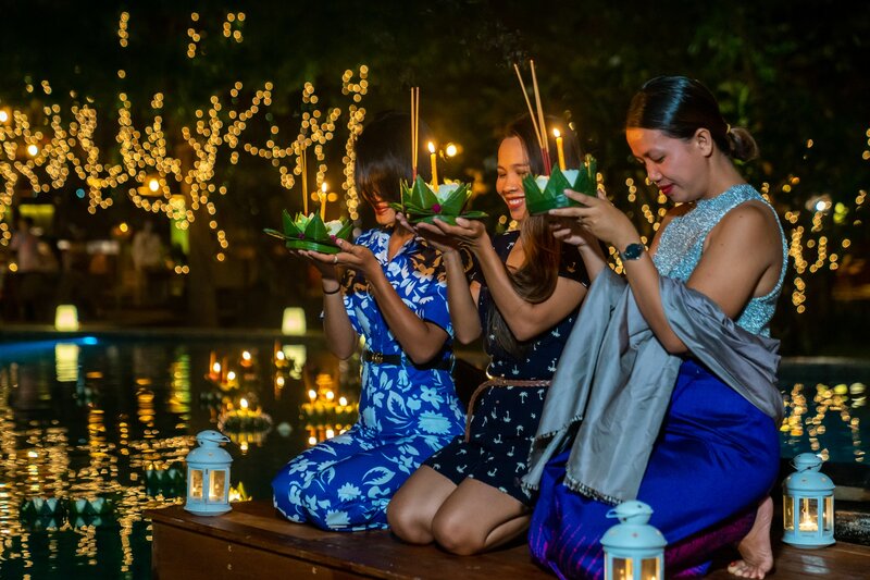 With the pandemic restrictions recently eased but necessary caution still in force, the 19 and 20 November events were limited to Templation guests, who at some point were joined by the resort's team to float the Festival lights over the majestic swimming pool, designed as a natural pond spreading its shiny waters beneath majestic trees, a few minutes from Angkor Wat.