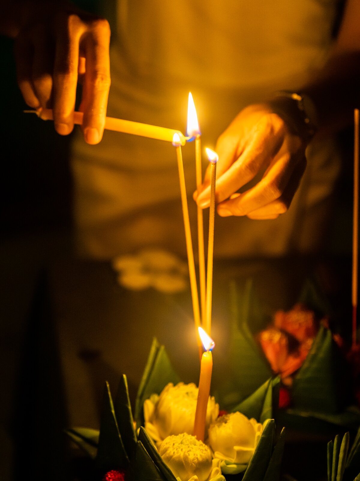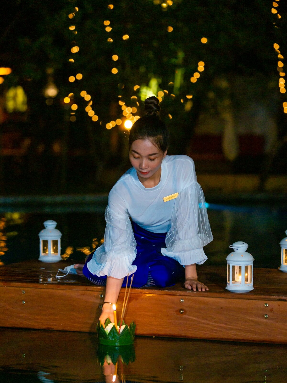 And the rain stopped, and a radiant full moon shined over Templation Angkor Resort, where guests were invited to join in the enchanting ritual of floating the kantong (កន្ទោង), these fragile shells made of banana leaves that carry away on the water candles, flowers and small offerings to Preah Mae Kongkea, the guardian female deity of the water.