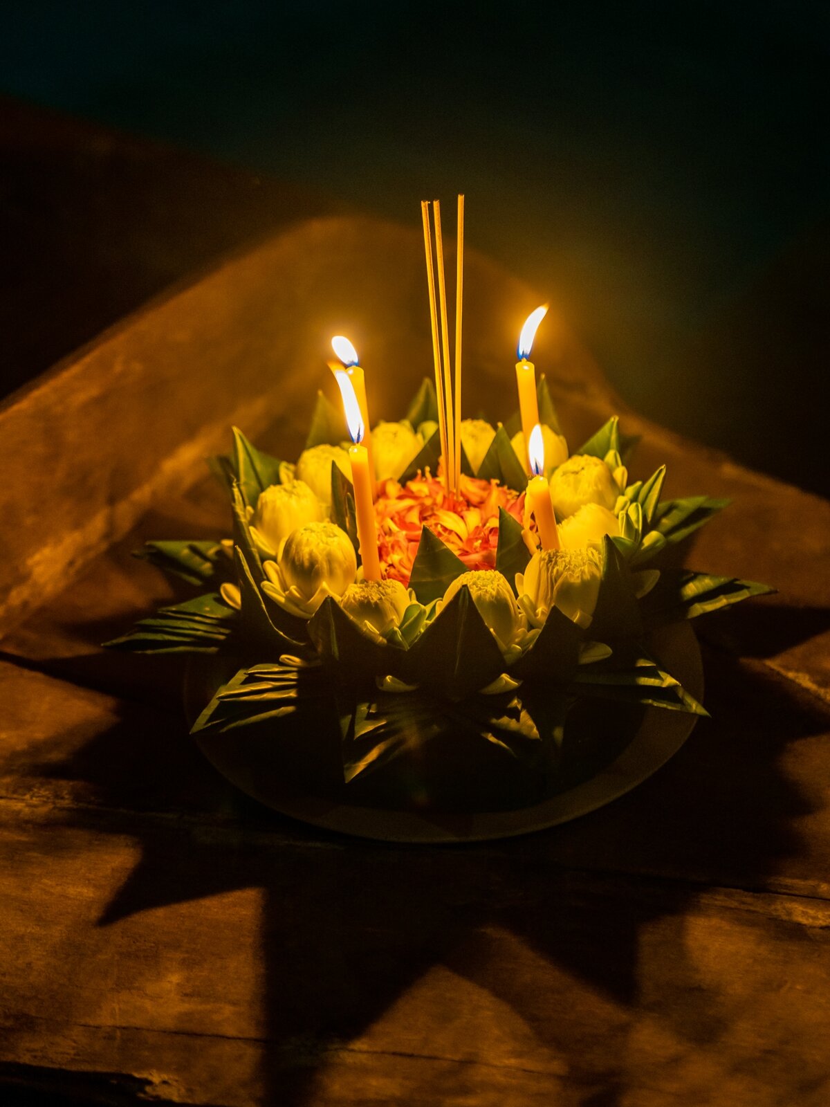 So close to the Khmer temples, it naturally came to mind that Bon Om Touk, the Cambodian Water Festival, originated during the time of Jayavarman VII for the racing boat tradition, and much earlier, in the 8th century, as a tribute to Goddess Ganga, the deity of water, source of life, for the Bratib (ប្រទីប, illuminated boats) one.