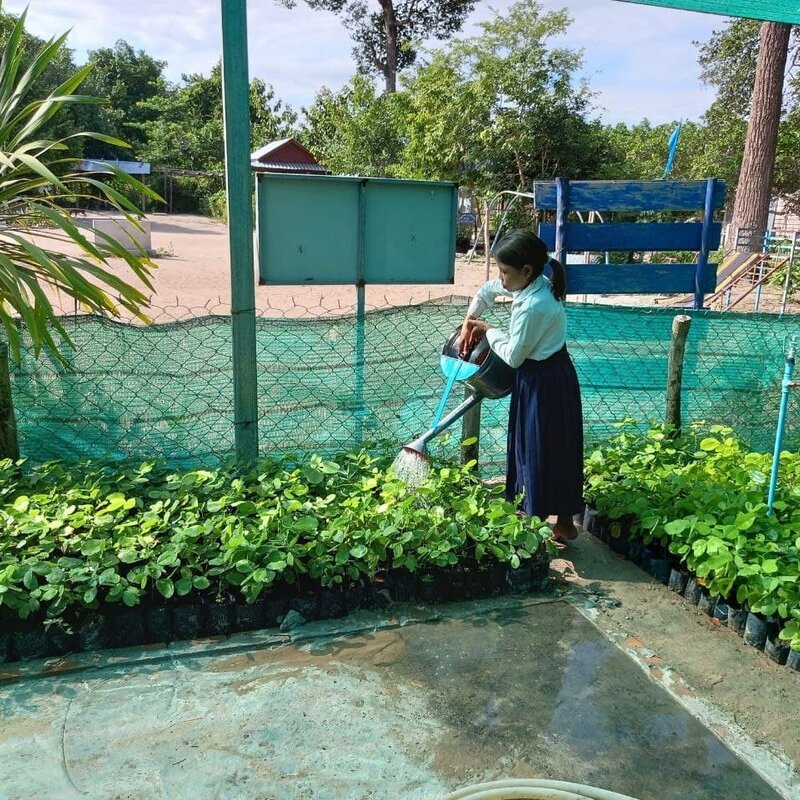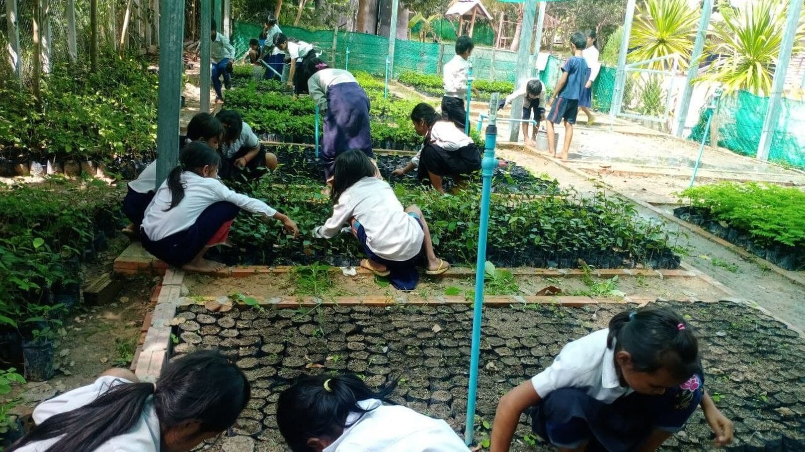 Beng (Afzelia xylocarpa (Kurz) Craib), Yeng (Dipterocarpus alatus), Koki (Hopea alferi), Thnong (Pterocarpus macrocarpus) -- these varieties so emblematic of the Cambodian traditional house -- as well as the famed Kulen (Nephallum litchi or Litchi chinensis) and the Chan Krasna (Aquilaria crassna Pierre), are among the species nursed by young students, with germination periods ranging from 3 to 14 days during the rainy seasons.