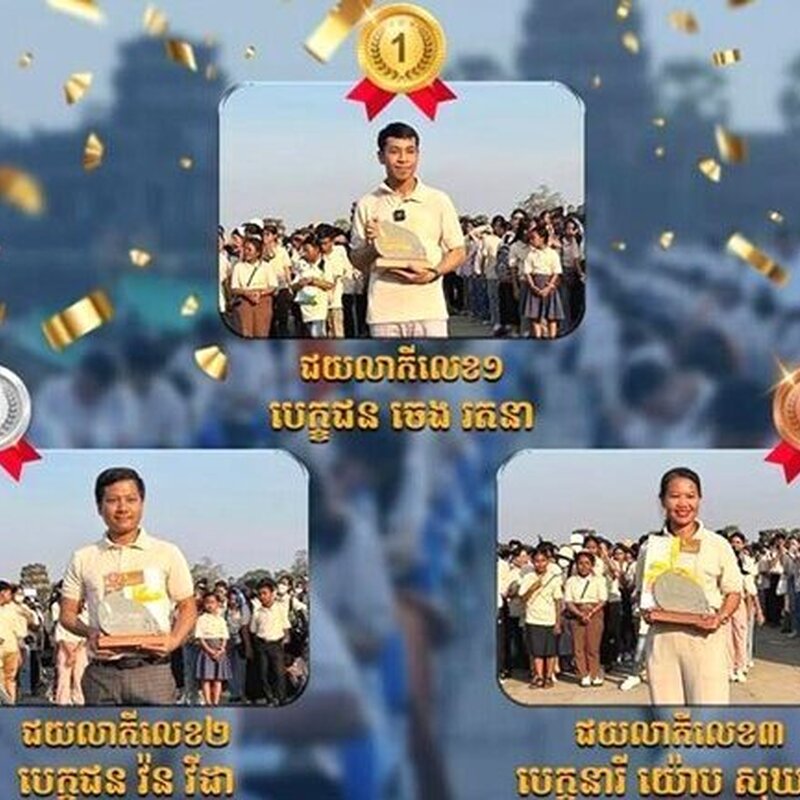 At the end of the 1-hour long dictation, the jury deliberated and announced a while later the three winners: 1st, Cheng Ratana, 2nd, Vorn Vida, 3d, Yop Sokheak. The significance of this contest was also stressed by the fact that Prime Minister HE Hun Manet personally congratulated the winners and all contestants, recalling that the improvement of the education system in Cambodia is a top priority in the "Pentagone plan" for the development of the country.