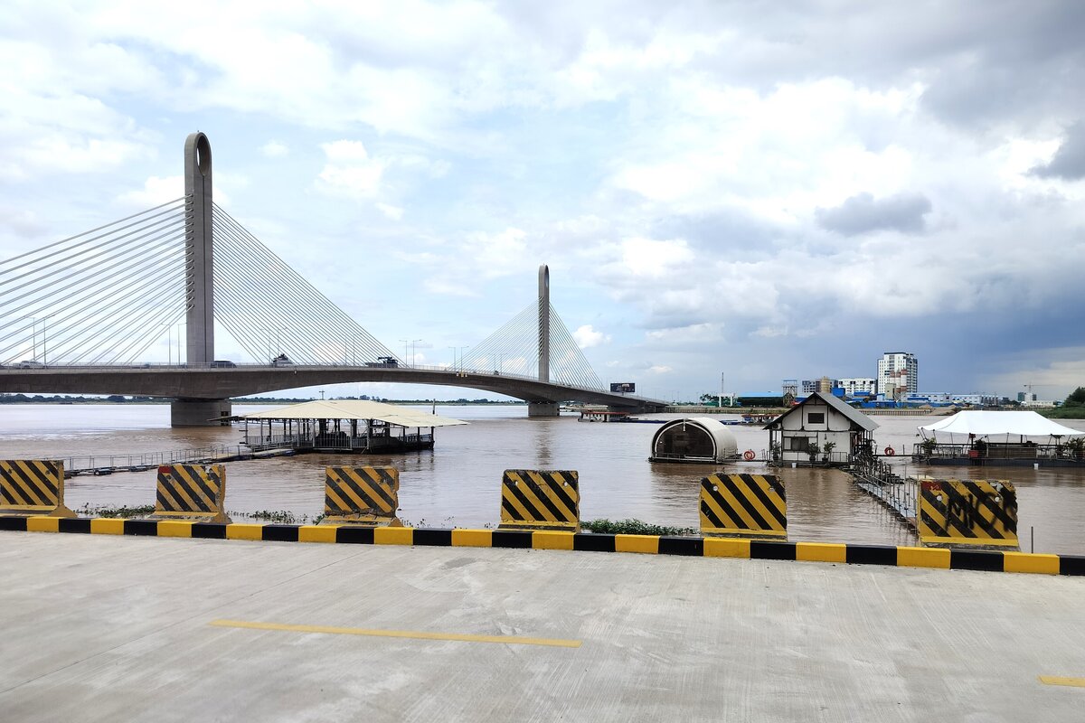 The same opening-up to the river can be experienced at the neighboring Aquation Restaurant. Now that the construction screens do not impair the view (and the airflow) anymore, customers of this quite atypical office cafeteria enjoy their lunch with the Bassac River a few meters away, and the bridge deploying its graceful arc right to their left.