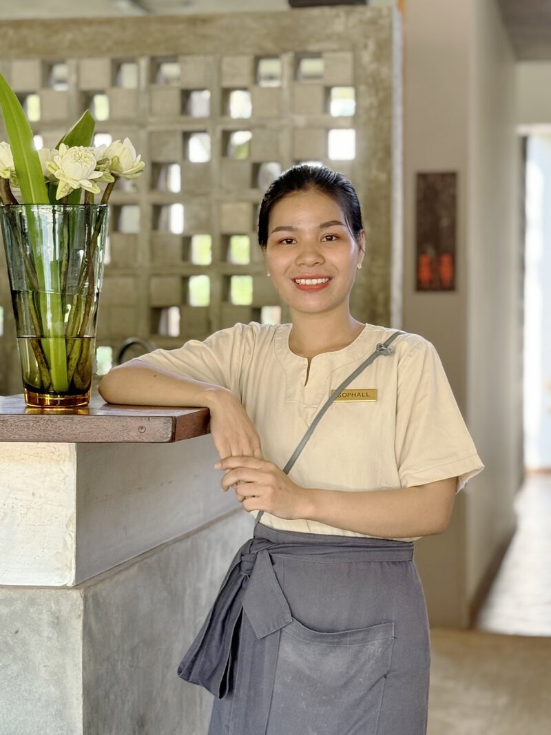 Hard-working and always willing to learn, Sophal is now part of Templation Angkor Resort lounge & restaurant team since 2019. "I just love to see happiness on our guests' faces when I wait on them", she said during a service break recently; "Like the rest of our Food & Beverage team, I can see how really appreciated a refreshing drink and a revigorating meal can be after a hot day around our beautiful temples."