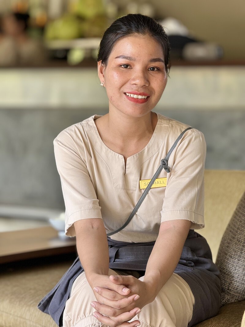 Selected by Spoons Cambodia for their hospitality training course in Siem Reap, she started an internship at Templation Angkor Resort in 2019, and was quickly recognized for her dedication.
